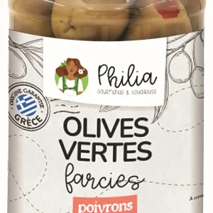 Olives vertes farcies au poivron rouge BIO – 190g net égoutté
