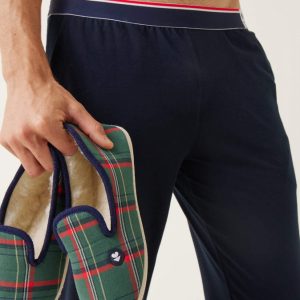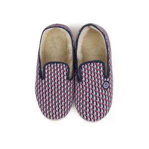 Chaussons d’intérieur en laine carreaux marine